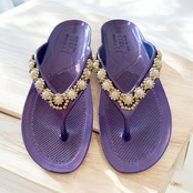 3本鼻緒 サイズ:M(22.0〜23.5cm) 色:パープル 3本鼻緒は、現代の生活にフィットしたデザインと機能性を兼ね備えています。一体型の構造は、しっかりとしたホールド感を提供し、歩行時の安定性を高めることが特徴です。独自の滑りにくい仕様により、さまざまなシーンで安心してご使用いただけます。洗練されたデザインは、カジュアルに幅広く対応しています。
